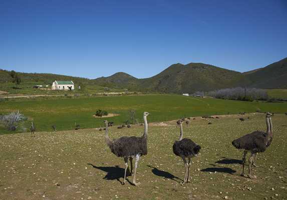 A pequena cidade Oudtshoorn fica no centro da província de Klein Karoo e faz parte da Rota dos Jardins (Garden Route), na qual há vinhedos e um destaque principal para a criação de avestruzes, que é a fonte de renda principal da região, com comércio de seus ovos, carne, couro e penas.